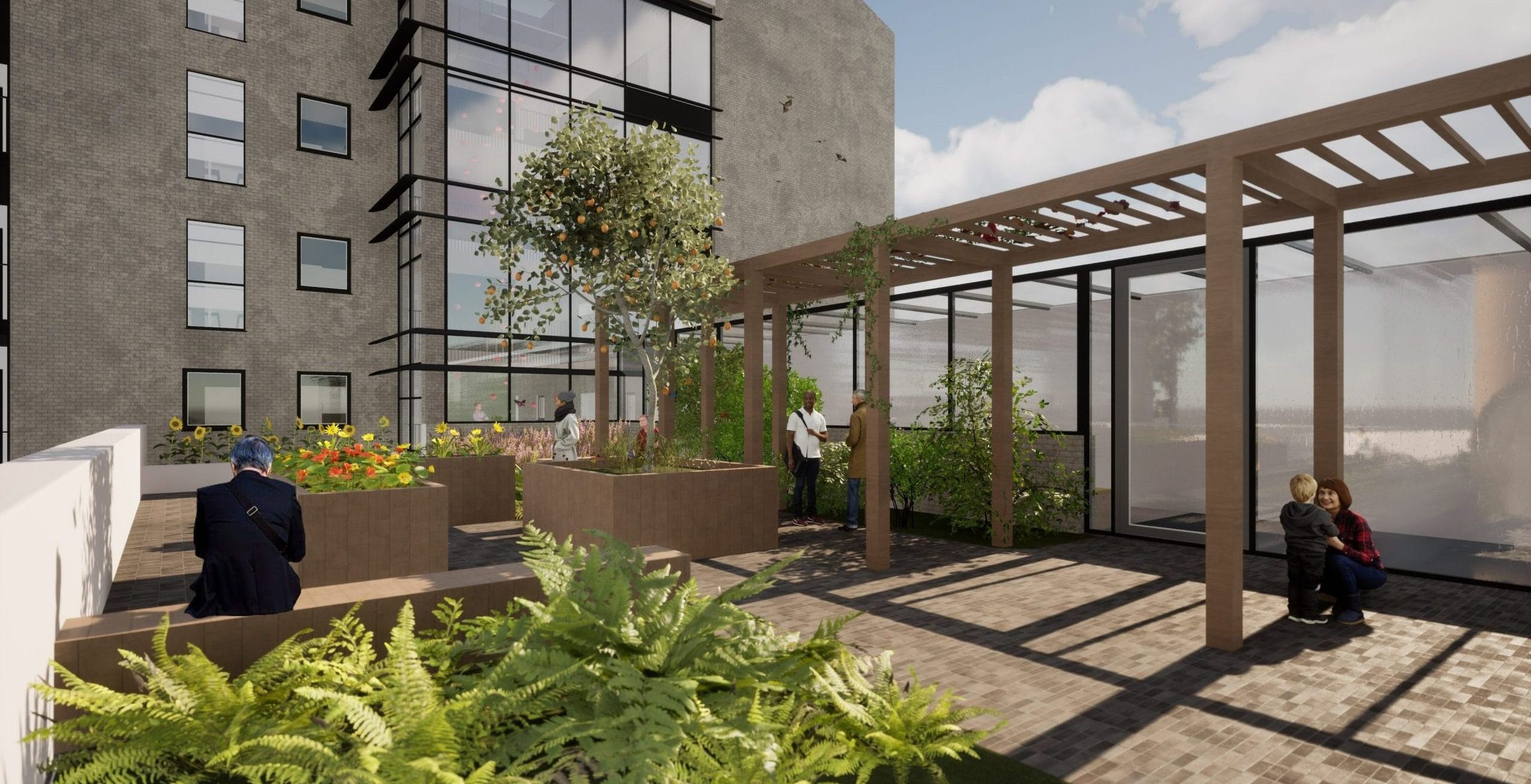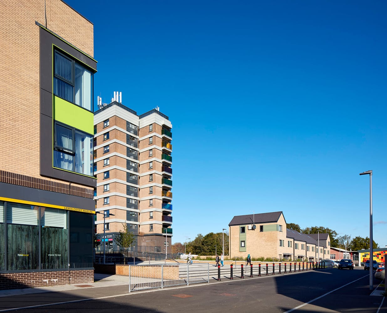 The new 6 storey development on the site of a former police station is linked to the existing residential tower by new communal facilities and an elevated garden. This vibrant new hub space will provide a place to meet and relax with a focus on nature and wellbeing. The scheme adopts HAPPI design principles and actively promotes interaction and inclusion which was a main theme emerging from extensive community engagement workshops.