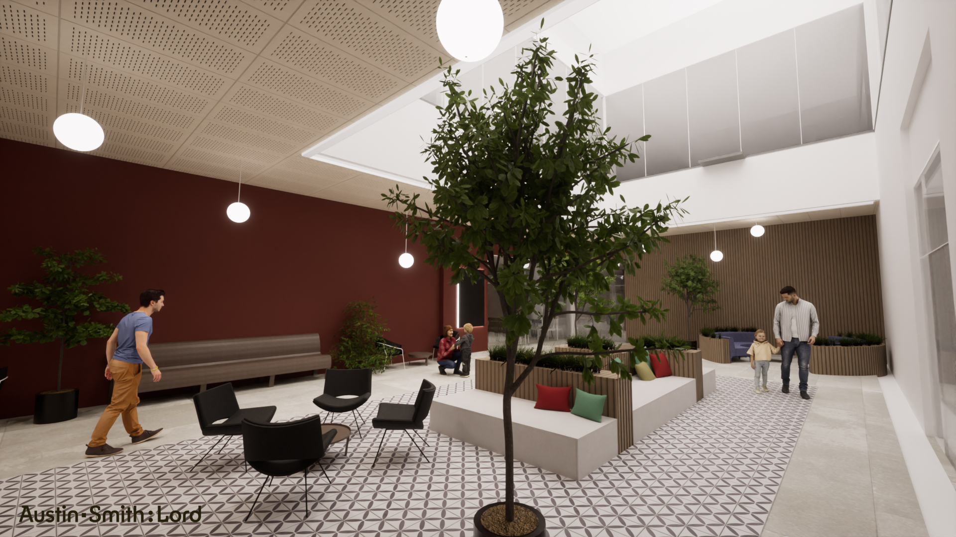 Our design concept for the repurposing of the Carmarthen Debenhams store is predicated on the creation of a new meeting place in the town centre, a one-stop destination for health, well-being and education. Visitors will enter into a space that will shift the perception of civic and institutional buildings. Arriving into a generous foyer/welcome-space designed to facilitate intuitive navigation through the building to destination spaces and activities all sense of the building being a retail space will be dispelled.