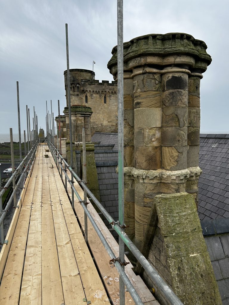 Chimneys are fundamental to the skyline of Old College and their restoration is key to preserving its structural integrity. There are 17 chimney stacks across the North and South Seddon, and Ferguson blocks completed in the 1890s, several include as many as 12 flues from open fireplaces and boilers inside the building.
