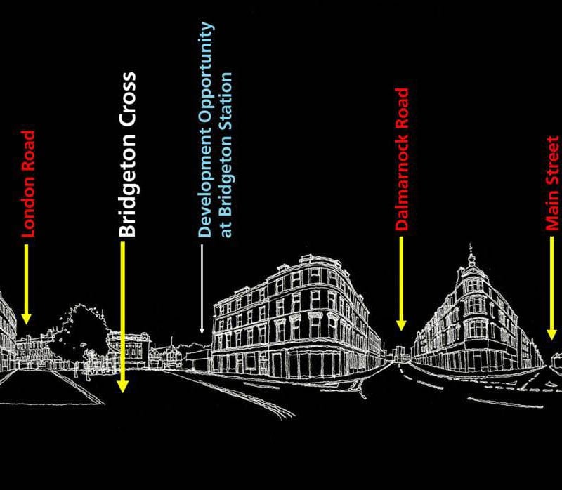 Public realm proposals and illustrative montages were developed for key selected areas, including Bridgeton Cross and James Street.