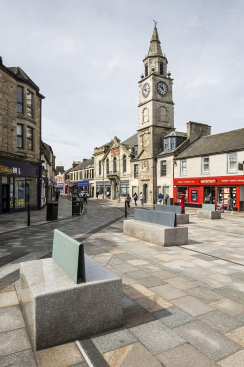 A new, improved public realm has been created on Countess Street, the strategic artery which links the town’s main railway station and local bus stops on Vernon Street with a key retail area on Dockhead Street plus the seafront beyond.