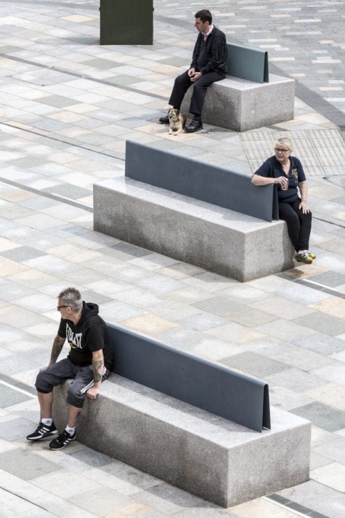 The design includes a new convivial urban space which features high quality surfacing and lighting improvements, to encourage community and civic activity, support the increased footfall to the newly refurbished Town Hall and create an attractive setting for weddings and other events set within the revitalised building. The one-way vehicular traffic system has been retained and accommodates ceremonial vehicles arriving at the Town Hall, general service and refuse access. Pedestrian space, however, has been increased and the space is organised to avoid parking interfering with pedestrian movement.