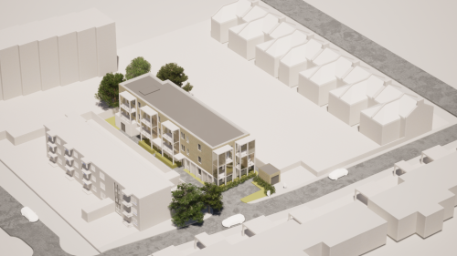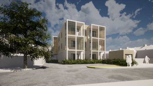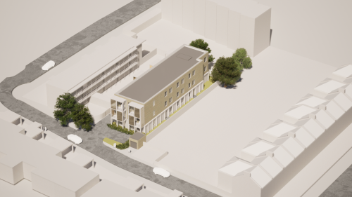 This development of an old garage site will provide a 3-storey apartment block with 10 affordable dwellings designed to the highly energy-efficient Passivhaus Standard.