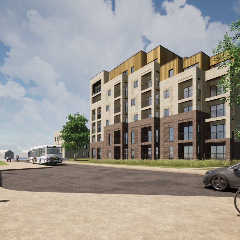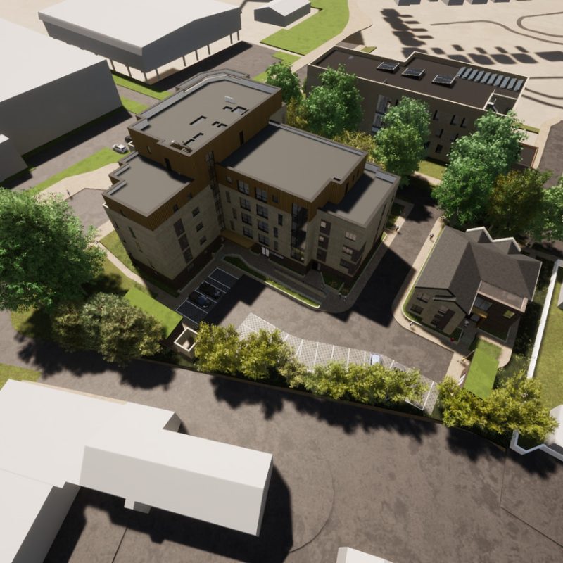 The Sunnyside House project seeks to address an urgent need for affordable housing in Bridgend by providing 65 high-quality, sustainable homes for social rent in close proximity to the town centre. The Site provides an opportunity for a landmark building to accentuate the corner of Sunnyside Road and Angel Street; providing a key wayfinding marker for the adjacent Sunnyside Health Centre and the Sunnyside Wellness Village and continue the ongoing regeneration of the local area.