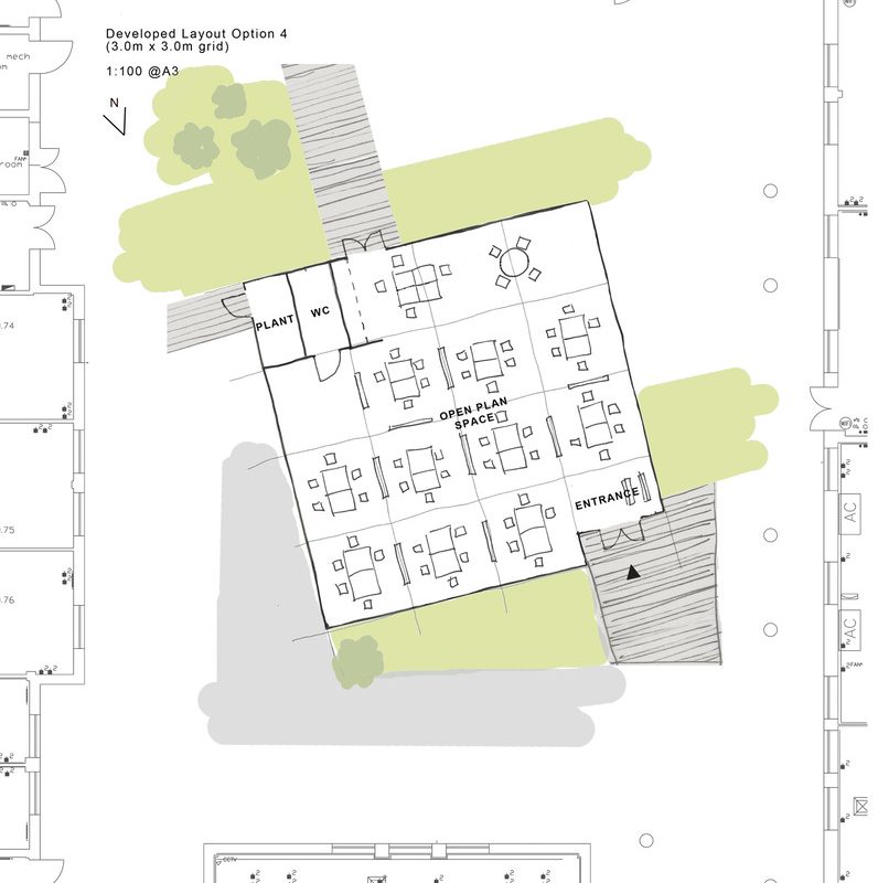 In accordance with the client’s brief, the design is simple and robust, with minimal interior finishes. The building is future-proof with respect to campus development and can be dismantled and moved if required.