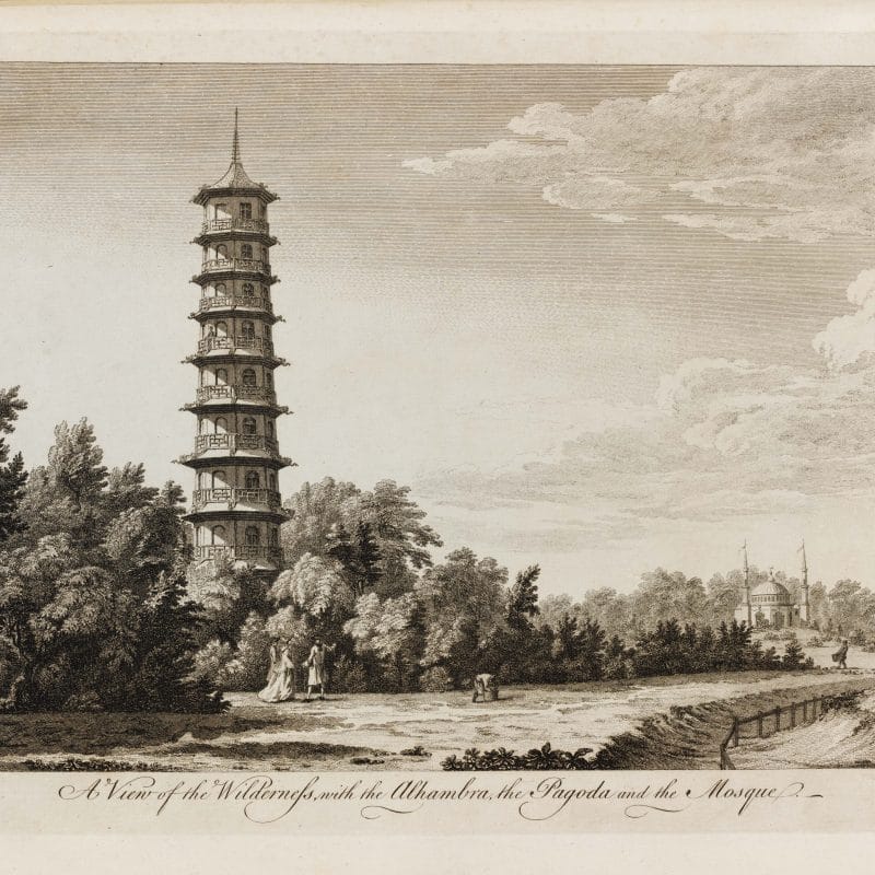 Only the Pagoda and Orangery survive to this day but other structures namely the Mosque, Alahambra and House of Confucius which were made of more ephemeral materials have been lost.