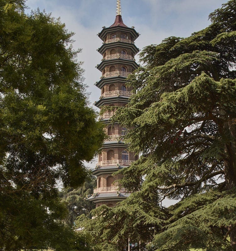 The Great Pagoda was designed by Sir William Chambers for Princess Augusta. Chambers was her architect and tutor to her young son George who would later become King George III.